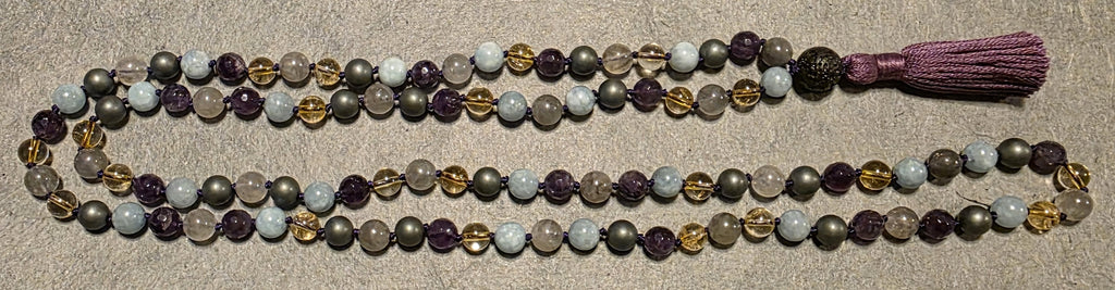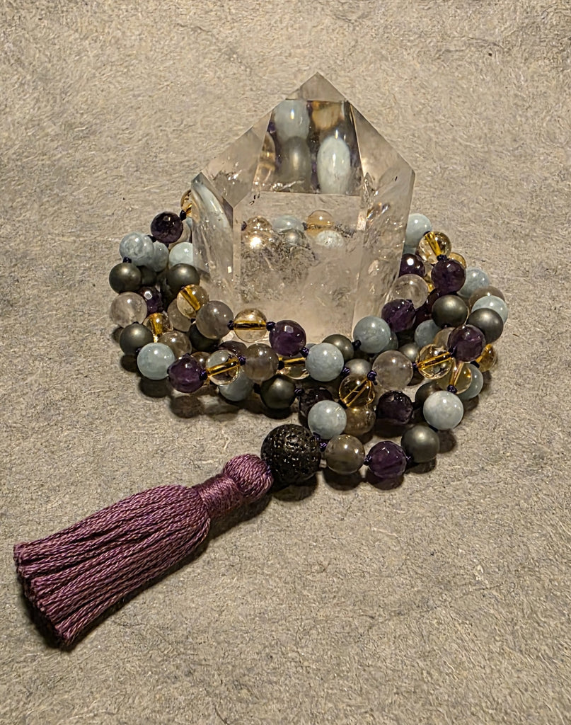 This mala is made up of one stone from each of the five elements assisting in the universal connection with all that exists.