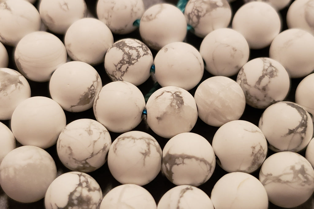 Howlite (matte) (white turquoise): a wonder stone for calming upset states of mind and emotion. Howlite decreases an overly critical state of mind, selfishness, stress, and anxiety, bringing calm and relaxation. Howlite also can decrease anger originating from within or externally.